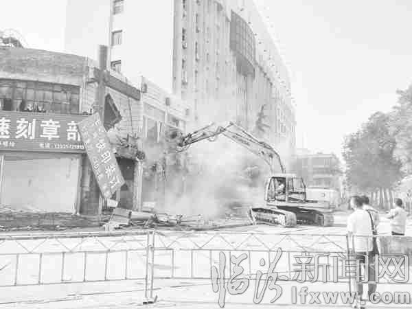 臨汾新聞網訊 6月13日上午,鼓樓南北街拓寬改造工程又一處建筑物被拆除。當天,記者在水廠十字路口看到,一臺大型機械正在拆除東南角的一棟二層樓房。此處建筑物拆除后,將使道路變得更加暢通。