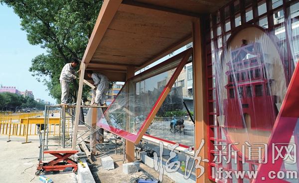 臨汾新聞網訊 連日來,在鼓樓南北街拓寬改造現場,工人們正在對公交候車亭進行安裝。公交站亭是城市的窗口和名片,鼓樓南北街拓寬改造期間,我市對公交候車亭的設計凸顯了鼓樓特色,獨具特色、古樸典雅的公交站亭既彰顯了城市歷史文化的獨特魅力,又與周圍街景的景觀協調配合、相得益彰,將進一步提升我市城市品位。