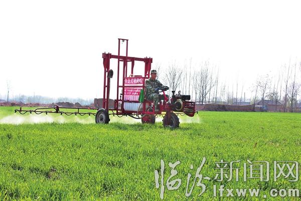 臨汾新聞網(wǎng)訊 4月1日,堯都區(qū)沃豐農(nóng)業(yè)服務(wù)公司煜龍晨種植專業(yè)合作社的技術(shù)員正在用自走式噴藥機(jī)對冬小麥進(jìn)行“一噴三防”田間管理。近年來,該合作社對農(nóng)戶的小麥、玉米田實行統(tǒng)一管理、統(tǒng)一技術(shù)指導(dǎo),有效提高了種植效益。