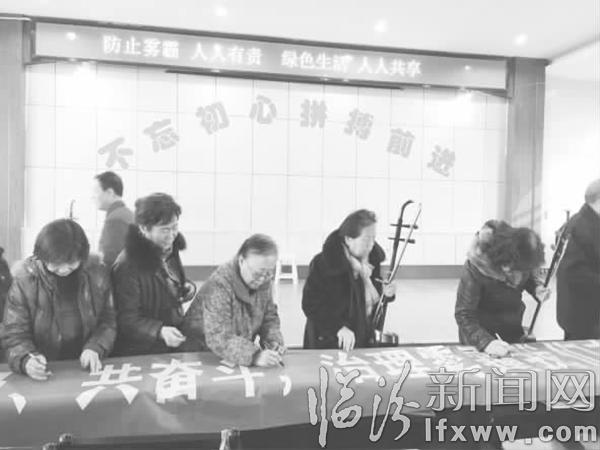 臨汾新聞網訊 針對近期霧霾天氣頻發,為了堅決打好生態環境整治攻堅戰,近日,堯都區老干部局、老年大學組織工作人員深入各相關單位、老干部活動中心和老年大學宣傳霧霾的危害及怎樣防治等知識,并在老干部活動中心、老年大學、金陽賓館懸掛了宣傳標語,同時開展了“同呼吸、共奮斗,治污減霾我們在行動”百人簽名活動。旨在倡導老年朋友們的責任意識,從我做起,從小事做起、從點滴做起,少開一天車,少放一點煙花爆竹,少抽一支煙等,力爭為減少霧霾、治理霧霾作貢獻。 記者 蘇亞兵 攝