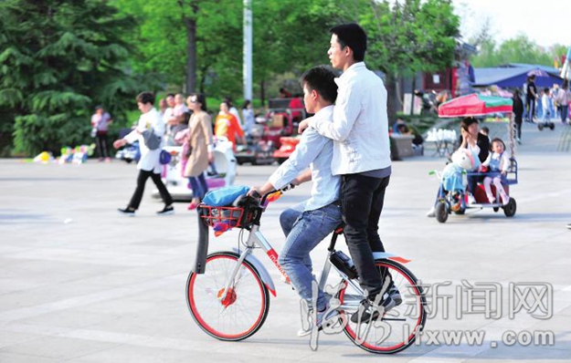 臨汾新聞網訊 4月23日,在市區九州廣場,兩名男子在摩拜單車上耍起了“雜技”。摩拜單車入駐臨汾以來,給市民帶來了綠色出行的健康理念,醒目的“黃色”成為市區一道靚麗的風景線。希望市民在享受這一方便的同時能遵守社會公德、提高個人素養,共同維護好城市文明形象。記者 閆銳鵬 攝