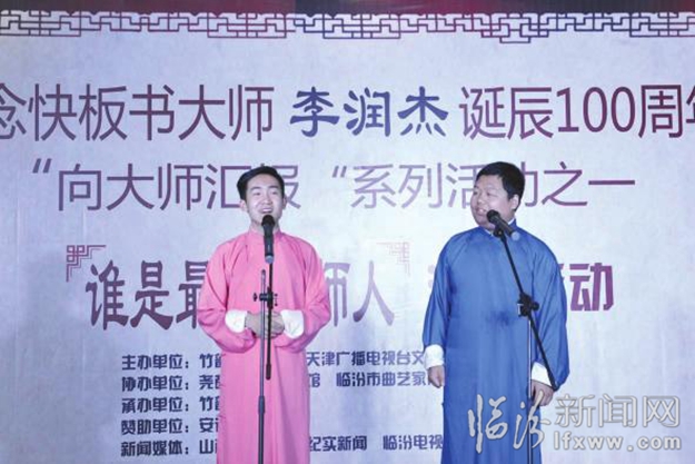 臨汾新聞網訊 5月1日,由臨汾市曲藝家協會、堯都區群藝館、竹韻齋平陽曲苑等單位舉辦的紀念快板書大師李潤杰誕辰一百周年——“向大師匯報”海選活動在臨舉行。