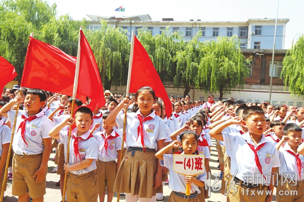 臨汾新聞網(wǎng)訊 5月25日,臨鋼小學(xué)校園內(nèi)隊(duì)旗飄飄,鼓聲陣陣,該校舉行的一年級(jí)新隊(duì)員入隊(duì)儀式,拉開(kāi)了臨鋼小學(xué)2017年慶六一系列活動(dòng)的序幕。當(dāng)天共有400名一年級(jí)學(xué)生光榮地加入中國(guó)少年先鋒隊(duì),他們莊嚴(yán)宣誓,從自己做起,從小事做起,努力做一名合格的少先隊(duì)員。 韓曉霞 趙勇攝
