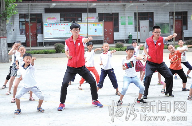 臨汾新聞網訊 六月十九日,在堯都區金殿鎮席坊小學,小學生們在山西師范大學志愿者指導下學習武術健身操。山西師范大學“二三六愛心社”從全校募集優秀志愿者,結合該社舉辦的“燭光助學行動”, 定期在該小學開展“大手拉小手”支教活動。 通過在音樂、 體育以及美術等特色課程方面的幫扶支教,培養學生德智體美全面發展。