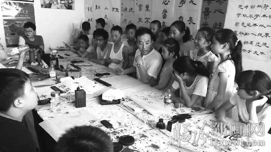 臨汾新聞網訊 8月20日,循著淡淡的墨香,記者走進位于秦蜀路上的堯都書法培訓中心,教室外的葫蘆架掛上了青澀的小葫蘆,一窩雛燕剛剛出窩,在培訓中心的上空盤旋著飛翔,書法教師楊馮虎正在教室里輔導學生寫毛筆字,不時有孩子們歡快的笑聲傳來。記者不禁從心底發出感慨,真是一個研磨習字的好地方啊。
