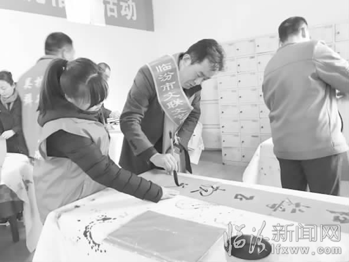新春送祝福,家和萬事興。2月7日下午,市文聯組織14名書法家來到堯都區吳村鎮,開展“下基層,送春聯,送祝福”活動,把濃濃的年味兒和新春的祝福送到群眾家門口。 記者李靜攝
