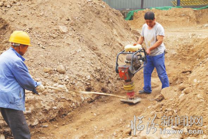 在工地入口處,工人王心愛正在和同事們認(rèn)真地沖洗著一輛輛即將駛?cè)胧袇^(qū)的車輛。王心愛說,不能把灰塵帶到市區(qū)?!毕蜿栁髀犯脑旃こ套?月8日開工至今已有兩個(gè)月,目前,雨水、污水管道施工全線完成,路槽開挖已形成,道路結(jié)構(gòu)砂礫已鋪設(shè)600米,計(jì)劃5月中旬開始鋪設(shè)水穩(wěn)碎石,6月份實(shí)施人行道鋪設(shè),道路配套設(shè)施安裝及路面鋪油工程,工程預(yù)計(jì)6月底全線完工。