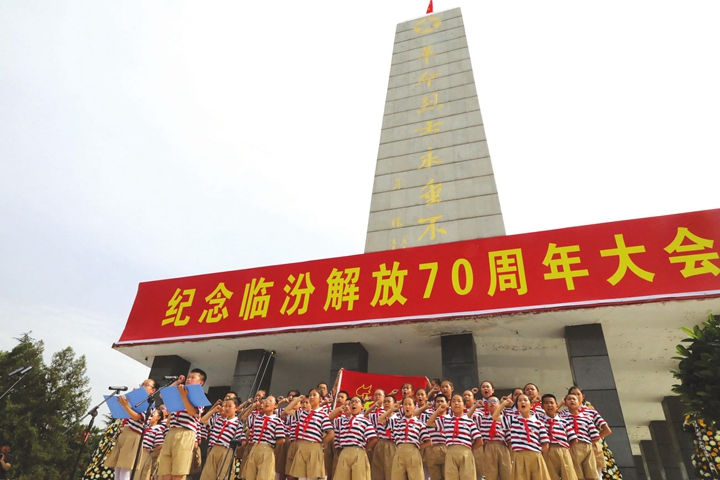 臨汾新聞網訊 5月17日9時,“紀念臨汾解放70周年”大會在臨汾烈士陵園拉開帷幕。各界人士向在解放戰役中犧牲的烈士默哀,向革命烈士紀念碑敬獻花籃,少先隊員獻辭并齊唱少先隊隊歌。