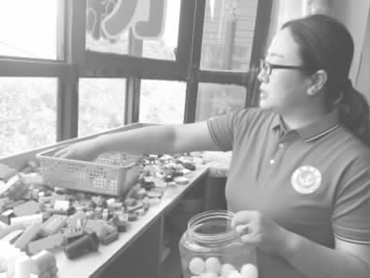 “特教學校里有著一群‘來自星星的孩子’,他們更需要用心關愛、呵護。班里有個名叫小楠(化名)的孩子,他是最讓我心碎又給了我最大希望的孩子。第一次見小楠,他看都不看我一眼,沉浸在自己的小小世界中,不讓別人去打擾。專業知識告訴我,自閉癥孩子就是這樣的,但我還是很難受,我輕輕地拉起他的手,并告知自己一定要用心去感化、呵護他,讓他接納我。”翟春英介紹,有一天,我發現小楠拿打氣筒給平衡車打氣,我走了過去,和他一起完成。接著,我又跟他玩了好多游戲,通過一次次的玩耍,孩子與我建立了信任感,還主動找我玩游戲,這讓我倍感欣慰。”此外,通過不同的教學道具對孩子們進行“泛化”訓練。比如,大部分孩子在紙上認識蘋果,但換個位置就不一定認識了。所以,翟春英和同事們就得各種遷移,各種泛化。有大小、顏色不同的蘋果模型,有從市場上專門采購的實物……也許,這些內容對健全的孩子來說一會兒就能學會,但是對這些特殊孩子而言,可能得學上一個月,甚至更長時間,這就需要特教老師們有足夠的耐心去引導。