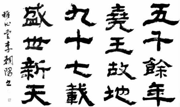 李朝陽生于臨汾,長于堯都,對這塊古老的土地愛得深沉。他借用筆墨直抒胸臆:臨汾是中華五千年文明的發(fā)祥地之一,是古帝堯王的都城,也是我們美麗祥和的家園。數(shù)千年的狂風(fēng),不曾吹折她挺拔的脊梁,反而使她愈發(fā)淡定從容,煥發(fā)出新時代的光彩。”“臨汾勇往直前,氣勢磅礴,她的精神令我自豪。改革開放四十年,臨汾發(fā)生了翻天覆地的變化,一排排高樓大廈如雨后春筍般拔地而起,一條條寬闊平整的道路貫通城市“主動脈”,一座座主題公園讓百姓對美好生活充滿信心。”李朝陽欣喜地說,新時代賦予新使命,古老的帝堯之都呈現(xiàn)花香果香、碧水藍天的新面貌。新目標(biāo)開啟新征程,臨汾美麗蛻變,正朝著宜居城市一步步邁進。”李朝陽用飽含生命力的書法作品,向世人展示著家鄉(xiāng)的人和事。同時,他承擔(dān)起書法人的社會擔(dān)當(dāng),以弘揚國學(xué)為宗旨,以傳承書法藝術(shù)為己任,悉心教授學(xué)生,常常告訴學(xué)生們臨汾是漢字的起源地,最早的書法就誕生于這塊古老的土地,增強學(xué)生對家鄉(xiāng)文化的認(rèn)同感和自豪感,鼓勵他們用大筆書寫“堯都風(fēng)光美臨汾歲月新”。
