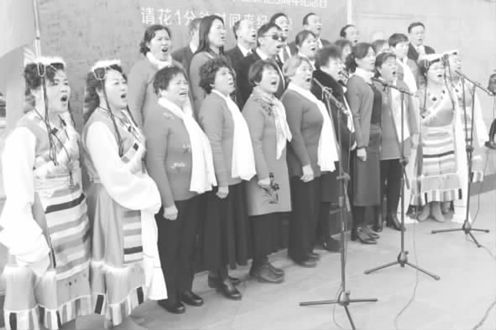 “東方紅”舞蹈驚艷亮相,過(guò)往群眾紛紛停下腳步,走進(jìn)平陽(yáng)廣場(chǎng)觀看這場(chǎng)以唱紅歌為主要內(nèi)容的文藝表演。表演者以50歲左右的中老年人居多,紅歌伴隨了他們的童年和青春,如今有的雖然已近耄耋之年,但依然無(wú)法割舍自己的“紅歌”情節(jié)。當(dāng)天的表演有大合唱《沒(méi)有共產(chǎn)黨就沒(méi)有新中國(guó)》《七律長(zhǎng)征》《山丹丹花開(kāi)紅艷艷》,有男聲獨(dú)唱《草原上升起不落的太陽(yáng)》《毛澤東的話兒記心間》《天邊的駱駝》《南泥灣》等,引來(lái)觀眾的陣陣掌聲。許多歌聲勾起臺(tái)下市民的回憶,他們跟著一起唱了《繡金匾》《瀏陽(yáng)河》《大海航行靠舵手》等歌曲。