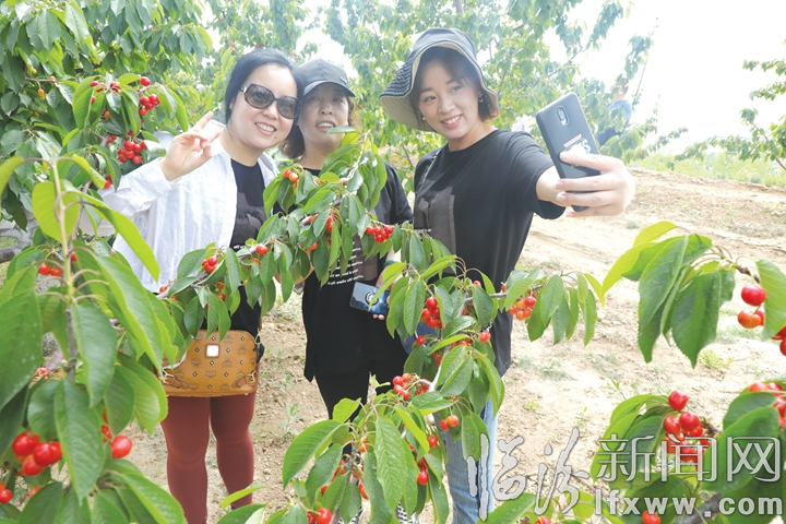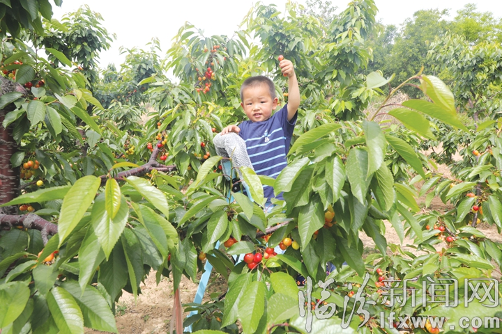 在清樂院村村民張?jiān)粕郊业臋烟覉@里,許多人拿著小籃子正在采摘,看著園內(nèi)的游客,張?jiān)粕叫Φ煤喜粩n嘴。張?jiān)粕秸f,他家總共14畝地,其中櫻桃占了9畝,剩下的種桃子、蘋果和核桃。今年的櫻桃長得特別好,一畝地大概毛收入兩萬元左右;加上桃子、蘋果、核桃的收入,一年下來能有十四五萬元的收入,比種小麥、玉米強(qiáng)多了,這日子過得和櫻桃一樣,紅紅火火。