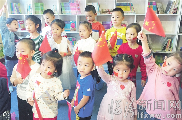 小朋友們手持小紅旗,聽圖書館工作人員講解“國慶節”來歷。記者 亢亞莉 攝