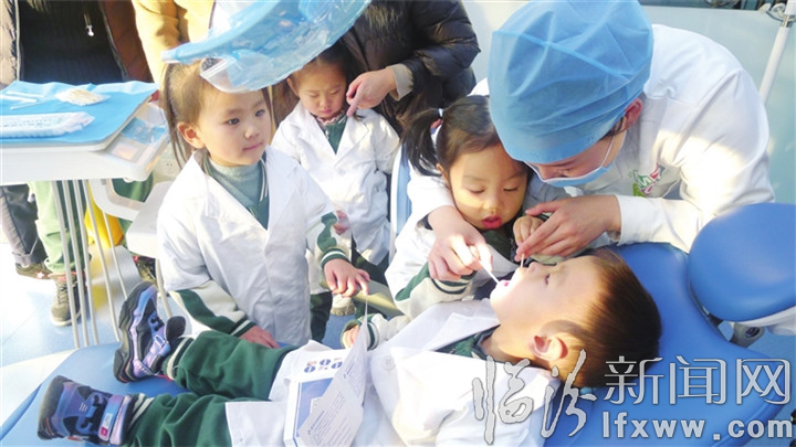 臨汾新聞網訊 近日,堯都區法布爾幼兒園聯合中西醫結合醫院口腔科,免費開展了寓教于樂的“小小牙醫”親子體驗活動,讓家長和孩子們以更直觀的方式,了解保護牙齒的重要性。圖為在醫生的指導下,小朋友們為同伴檢查牙齒。