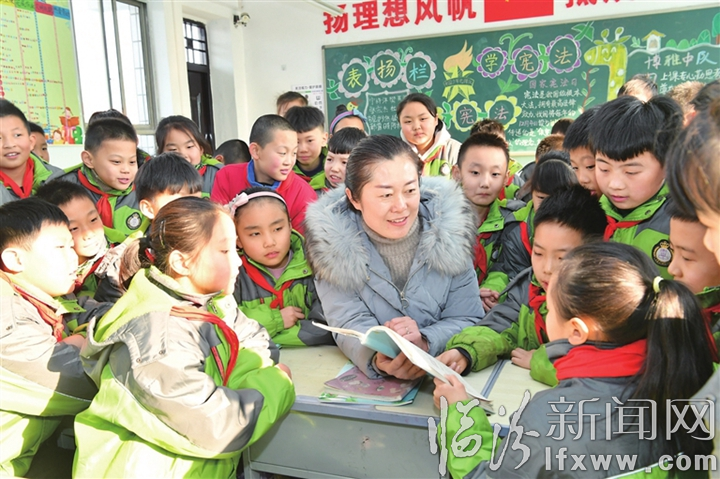 圖為堯都區(qū)育英小學四年級一班的李霞老師正在給學生講述榜樣的力量。