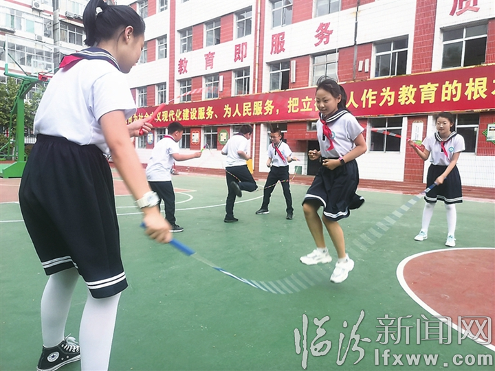 臨汾新聞網(wǎng)訊 5月25日,堯都區(qū)鄉(xiāng)賢街小學學生在體育課上進行交互繩練習。為增強學生體質(zhì),發(fā)揮體育運動在生理、心理調(diào)節(jié)方面的積極作用,該校錯時、分場地開展別樣的體育課,并做好場地、器材消殺等工作,確保學生運動安全。