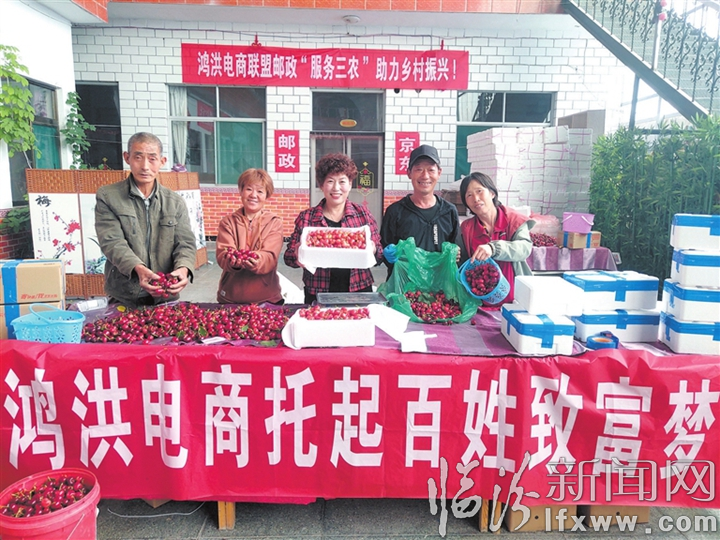 臨汾新聞網訊 5月30日,在堯都區縣底鎮賀家莊村鴻洪電商院內,裴雙全夫婦與賀紅順夫婦正在通過電商平臺銷售櫻桃。賀家莊村一帶是有名的優質櫻桃產源地,鴻洪電商在田間地頭手把手教會果農通過微信、小視頻、抖音等銷售櫻桃,并聯盟郵政、京東兩大物流公司開展下鄉服務,及時幫果農把櫻桃銷售到全國各地。