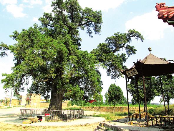 據(jù)楊家掌村村委會(huì)主任薛建強(qiáng)介紹,這棵千年古柏與伏羲畫(huà)卦有關(guān)。相傳,人們?nèi)绻撤ミ@棵古柏,周邊村子的牲口必然會(huì)大批死亡,或許,正是這個(gè)神奇的傳說(shuō),才使這棵千年古柏至今保存完好。