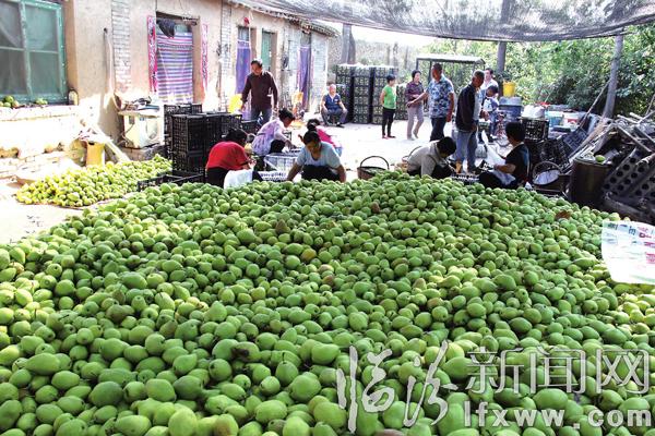 臨汾新聞網(wǎng)訊 近日,翼城縣北關村村民谷家祥家種的25畝紅香酥梨已成熟,來自絳縣的客商正在挑選裝箱,準備銷往南京、南昌等地。今年,北關村許多村民種植的梨樹喜獲豐收,前來收購的客商絡繹不絕。 程韻龍 姚冬娟 攝