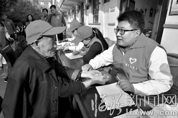 臨汾新聞網訊 10月20日,翼城縣中醫院通過為光榮院的老人進行免費體檢,為老人們送上了一份有意義的“重陽”健康禮物,醫護人員認真仔細地為每一位老人作血壓、心肺等常規檢查,對每位老人的健康情況都做了詳細的記載,通過此次活動旨在弘揚中華民族尊老敬老的傳統美德,更好地樹立尊老敬老的社會風尚。(李成健 聶飛)