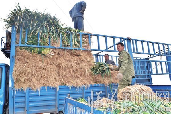 臨汾新聞網(wǎng)訊 近日,在翼城縣中衛(wèi)鄉(xiāng)趙家村地頭,村民正忙著收蔥、裝車。趙家村是翼城有名的大蔥種植基地,該村今年種植大蔥500畝,畝均收入3000余元,人均增收2100多元。 李維杰攝
