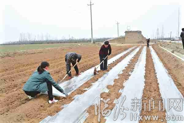 臨汾新聞網(wǎng)訊 時值春土豆播種時期,翼城縣廣大農(nóng)民深入田間地頭深耕、打壟、播種、覆膜,一派春忙。圖為該縣南梁鎮(zhèn)西王村村民正在為種好的土豆進行覆膜。 宋榜娟 攝