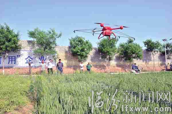 臨汾新聞網訊 日前,翼城縣益農農機合作社正在利用多旋翼無人植保飛機配合里砦鎮里砦村完成小麥“一噴三防”工作。據了解,每架飛機每次可完成20畝到30畝小麥施藥工作,是人工施藥效率的40倍,具有安全高效、節水節藥、噴灑均勻、節省勞動力等優點。 邢育溪 攝