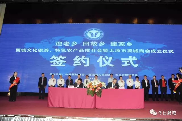 五月的龍城,花團錦簇、萬木蔥蘢。5月10日上午,“迎老鄉(xiāng)、回故鄉(xiāng)、建家鄉(xiāng)”翼城文化旅游、特色農(nóng)產(chǎn)品推介會暨太原市翼城商會成立儀式,在山西國際會議中心舉行。翼城縣四大班子領(lǐng)導(dǎo)楊春權(quán)、高永賢、解湧、李殿梁、李倫、董玲、許擁軍、鄭磊、胡國華、李文元、張新民出席。省城翼城籍相關(guān)領(lǐng)導(dǎo)楊波、李永宏、李連琪、祁進(jìn)軍、吉日奎、丹保安等,福建閩侯長江支隊和兄弟商會代表,在并翼城籍有關(guān)人士共計五百余人參加。太原市民政局有關(guān)負(fù)責(zé)人宣讀了太原翼城商會成立批文。現(xiàn)場簽訂了13個項目對接投資框架協(xié)議,總投資金額超過70億元。