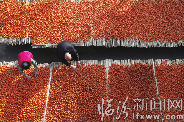 臨汾新聞網(wǎng)訊 近年來,翼城縣中衛(wèi)鄉(xiāng)吳寨村利用地理優(yōu)勢(shì)大力發(fā)展甜柿子經(jīng)濟(jì)林。鄉(xiāng)村兩級(jí)干部從宣傳發(fā)動(dòng)、土地流轉(zhuǎn)到技術(shù)支持,從最初5畝試驗(yàn)田發(fā)展到現(xiàn)如今數(shù)百畝的柿子經(jīng)濟(jì)林,為當(dāng)?shù)卮迕竦慕?jīng)濟(jì)增長(zhǎng)探索出一條新路子。圖為11月18日,該村村民正在自家的小院里晾曬柿子。