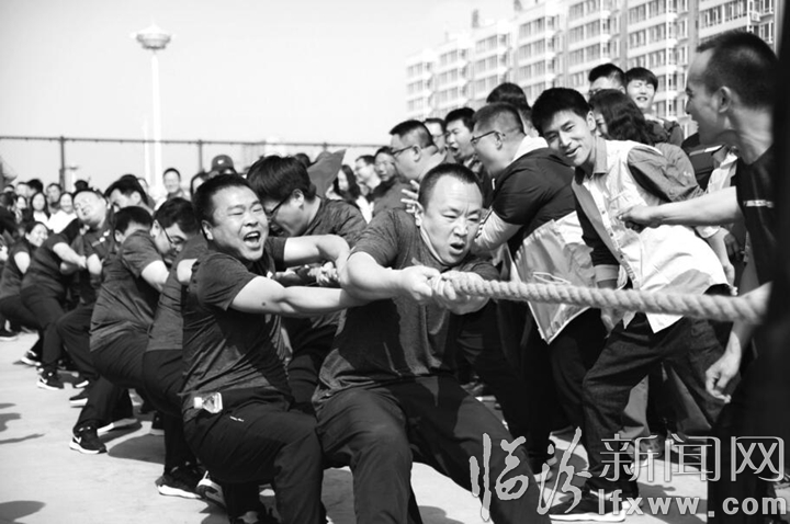 臨汾新聞網訊 近日,翼城縣舉辦了第五屆職工運動會,來自全縣的33支隊伍500余人參加了此次比賽。此次比賽為期3天,分為籃球、拔河、乒乓球三大項。圖為翼城縣人社局和水利局的運動員正在進行拔河比賽。