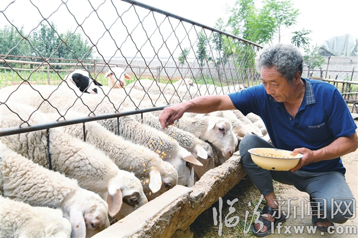 臨汾新聞網訊 翼城縣唐興鎮封壁村村民王金亮養羊已經5年了,在縣畜牧中心的支持下,他科學飼養,精心管理,現在年出欄量達到70余只,靠養羊致了富。圖為王金亮正在給羊添加飼料。