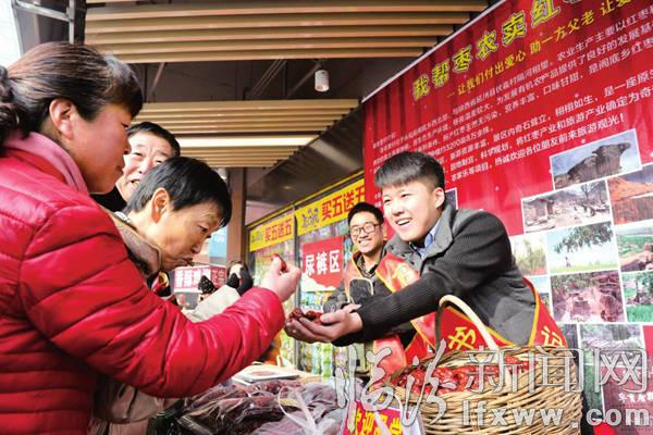臨汾新聞網訊 12月24日,在我市首屆知名品牌文化節上,來自永和縣閣底鄉奇奇里村的“第一書記”郭若橋(右一)在幫助村民銷售紅棗。今年以來,永和紅棗受天氣影響出現滯銷情況,成為農民心頭的煩心事,郭若橋獲知我市舉辦品牌文化節的消息后,將村民的1000余公斤優質紅棗打包成箱,運到臨汾,為村民們銷售紅棗。因該縣的紅棗綠色有機無污染,在品牌文化節一亮相,便被搶購一空。記者 閆銳鵬攝