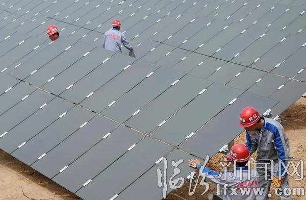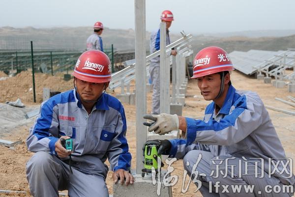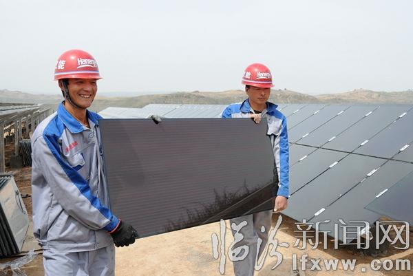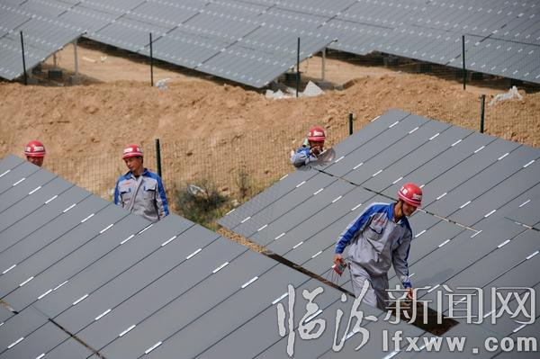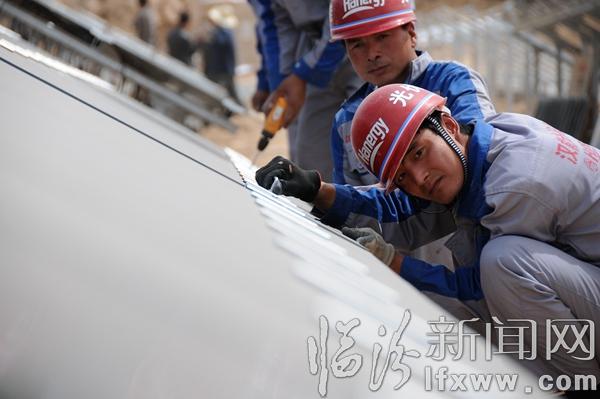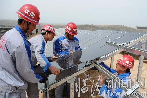 臨汾新聞網訊 5月1日,在永和縣閣底鄉陰德河村200KW光伏扶貧項目基地,漢能薄膜太陽能項目組的技術人員正在將數百塊薄膜光伏電板整齊地安裝在向陽的坡地里,該項目入駐臨汾以來,因地制宜,先后在堯都、襄汾、永和等地實施了光伏發電項目,在提供清潔、綠色能源的同時,結合國家光伏發電補貼政策,帶動老百姓建設光伏電站,開創農村利用清潔能源增收的新路子。