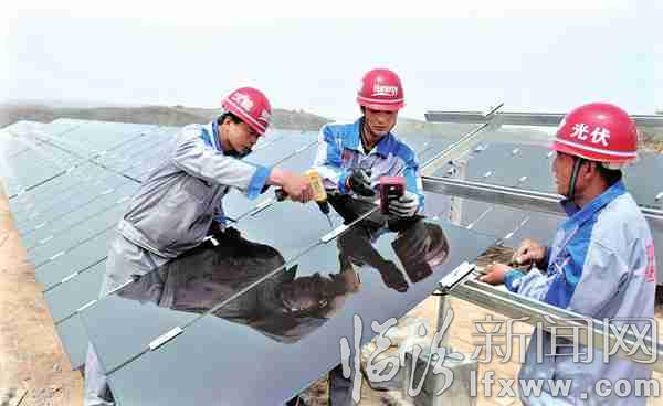 臨汾新聞網訊 近日,在永和縣閣底鄉陰德河村200KW光伏扶貧項目基地,市亞優光太商貿有限公司的技術人員在安裝漢能光伏發電設備。漢能薄膜太陽能項目入駐臨汾以來,先后在堯都、襄汾、永和等地實施了光伏發電項目,帶動老百姓建設光伏電站,開創了農村利用清潔能源增收的新路子。 記者 閆銳鵬 攝