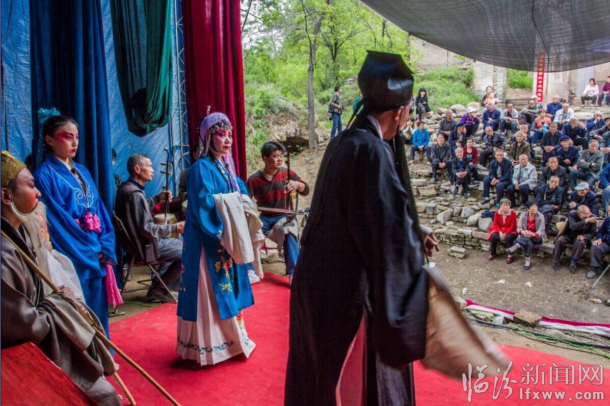 山西省鄉寧縣管頭鎮柏山寺,地處偏遠山區,交通鼻塞行動不便,農民很少進城。村里沒有任何文化娛樂活動場所,農閑時節,村干部籌集資金,在損毀殘缺的午臺遺址搭建簡易的舞臺,聘請劇團豐富群眾文化生活。農民們喜出望,外男女老幼專心致志觀看精彩演出幸福飛出心窩窩。