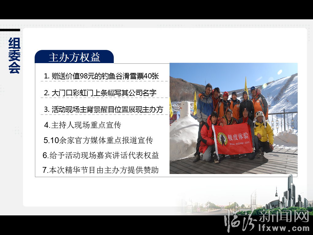 發布時間:2015-01-14 09:48:10 滑雪文化公益演出即體現了“民土民情”“文化藝術”一體的“滑雪文化體育娛樂”又給旅游業帶來經濟效益和社會效益;